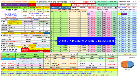네모 박스의 재직기간과 네모 박스의 적용보수액란에 입력이 되어 언제 명퇴하면 유리한지, 정년때 받는 연금액은 얼마나 되는지등 수많은 정보들이 제공이 됩니다.
