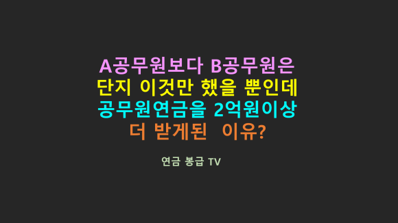 오늘은 A공무원보다 B공무원이 단지 이것만 했을 뿐인데 공무원연금을 2억원이상 더 받게되는 이유를 살펴보는 시간을 갖도록 하겠습니다.
